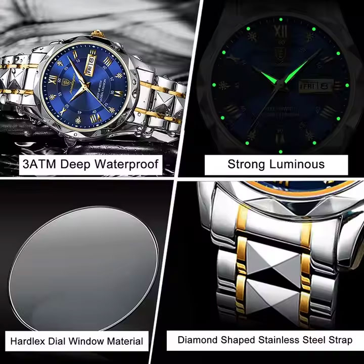 Top Marque Montre-Bracelet de Luxe pour Homme Étanche Lumineuse Date Semaine Montres pour Homme Acier Inoxydable Quartz Montre pour Homme